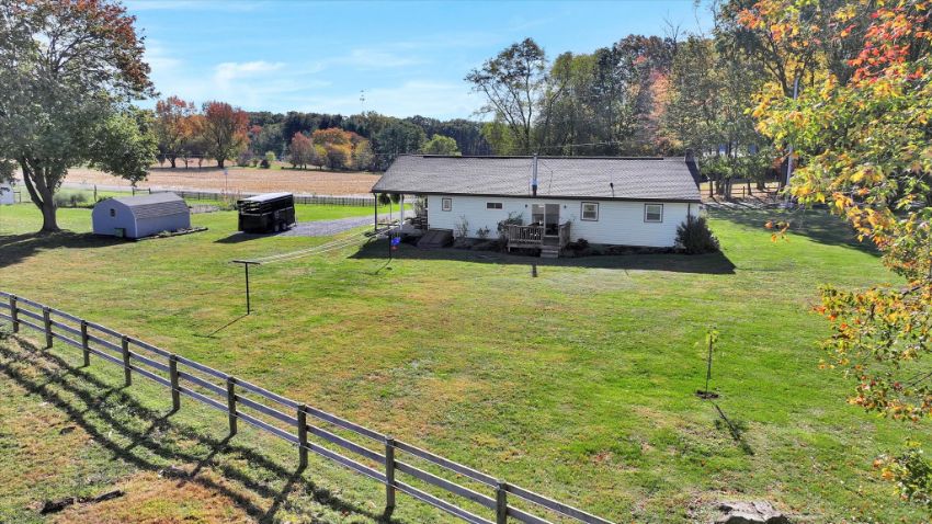 Myerstown/Mt. Zion/ Kutztown Area Country Ranch Home on 4.83 Acres, 1,612 Sq Ft Living Area, Eat-In Kitchen w/Woodstove and access to deck, LR, 2 Bedrooms, Office, 1 1/2 Baths, Spacious Mudroom with Laundry, Full basement, 12×12 Utility Shed, 10×32 Run-In Shed, Approx. 4 acres of fenced-in pasture. Cedar Crest Schools. Note: Reasonable taxes on this very nice 4.83 acre level lot ideal for livestock. Hi-tensile fencing giving you almost 4 acres of pasture. All just on the north side of Myerstown with easy access to RT 422.