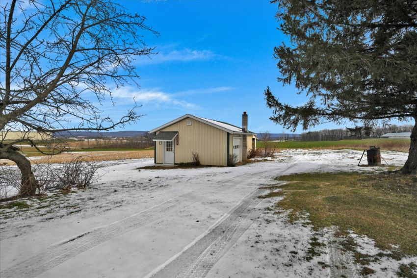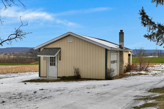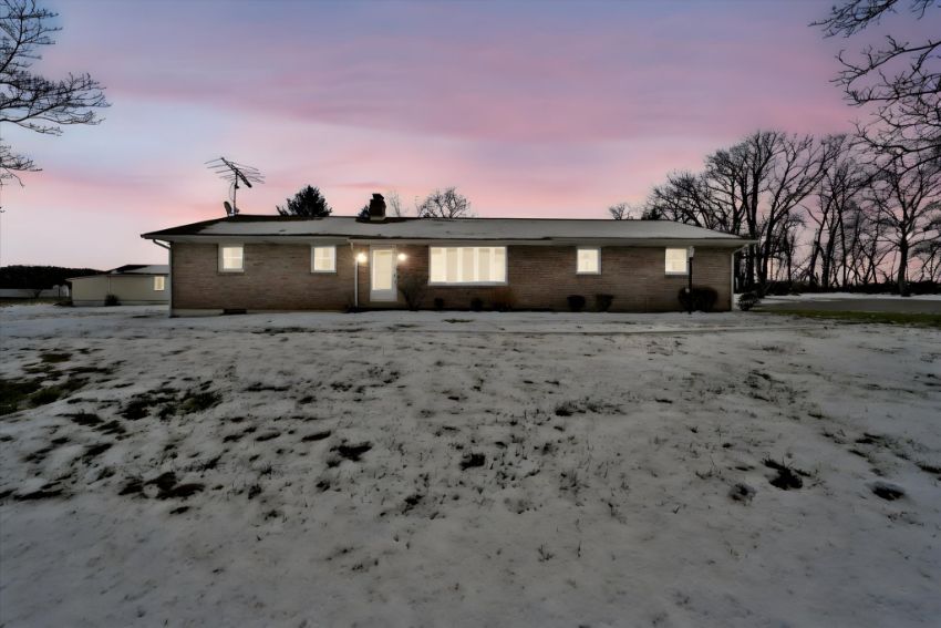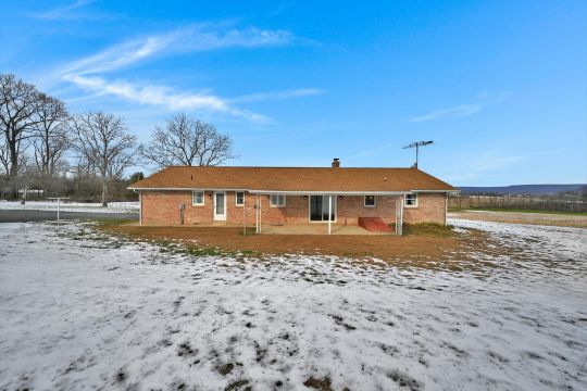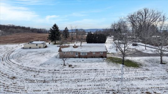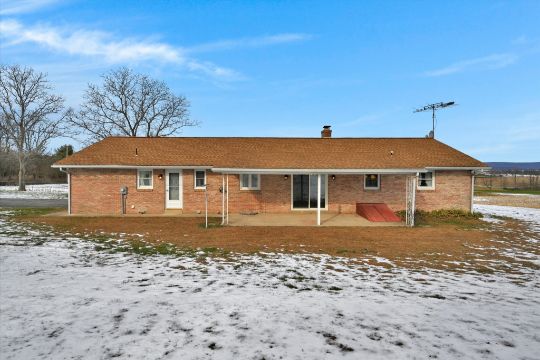Myerstown/Mt Aetna Area Full Brick 1540 SF Rancher on 4.8 +/- Acres Featuring a Kitchen and Dining Area with Access to a Covered Patio. Spacious Livingroom, Laundry Room, 3 Bedrooms, 1½ Baths. Central Air, Newer Oil Hot Water Furnace, Full Basement with approx. 950 SF Finished Area with a Brick Fireplace & Wet Bar, Very nice Replacement Windows, Attached 2-Car Garage, Plenty of Paved Parking, 20×30 Shed w/ Overhead Door. Marion Township, Berks County, Conrad Weiser Area Schools, Zoning: Agricultural Preservation, Taxes: $6,487.00.